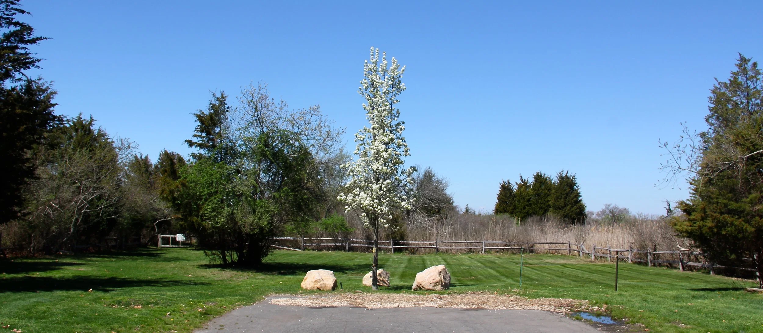 Springy Banks Road is named for the fresh water springs in Hampton Waters and elsewhere, that feed into the salt water of Three Mile Harbor.